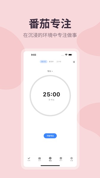 自定义专注时间和休息时间,保持专注,高效学习工作。