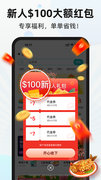 2、能够领取各种额度的优惠券,每天想怎么下单自己喜欢的美食都行。