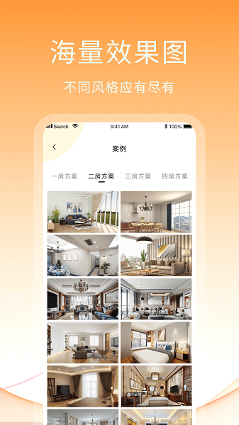 2、带来的装修案例都可以根据喜好筛选,日常在分类中挑选很轻松。