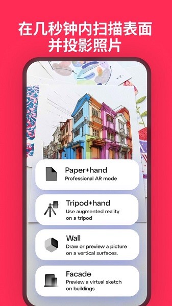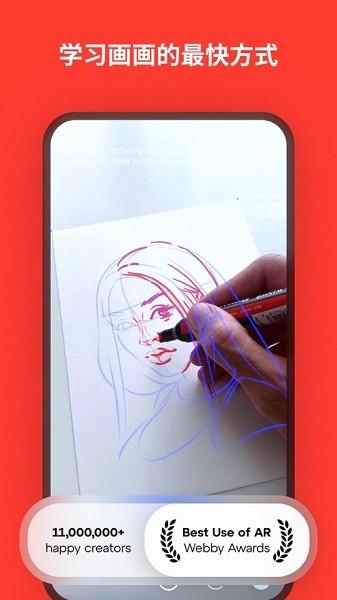 通过使用手机摄像头,您可以在面前的平面上看到一个AR素描图。您只需要拿一支铅笔,按照虚拟线一步一步在纸上进行绘画即可。专业艺术家也会使用该功能来在像墙壁这样的平面上绘制素描图。