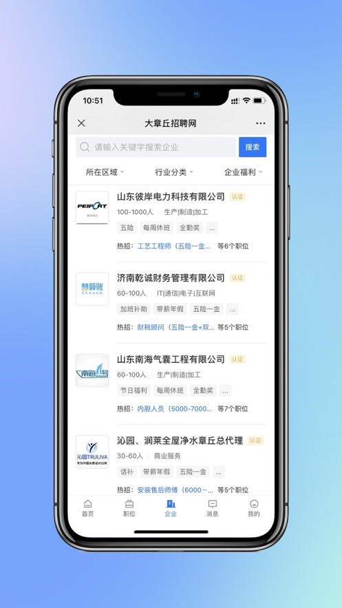 大章丘招聘网app带来了章丘本地超多招聘信息,众多的企业登录平台每天都在发布招聘信息,让大家可以在分类中进行筛选,也可以直接进行精准的搜索了,心仪的岗位可以投递自己的简历,日常咨询招聘人员各种问题很方便。