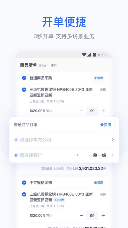 胖猫云是一款专注于钢贸行业的SAAS(软件即服务)软件,旨在通过提供全面的业务管理解决方案,帮助钢贸企业实现高效、便捷、安全的运营管理。软件实现销售、采购、库存等业务数据与财务业务一体化管控,实时跟踪管控,提升成本效益。自动生成多维度财务报表,帮助企业随时掌握经营情况,胖猫云支持现货采购销售、以销定采、期货预售、终端配送等多种交易模式,满足钢贸企业在不同业务场景下的需求,有需要的用户直接下载就可以开始体验了。
