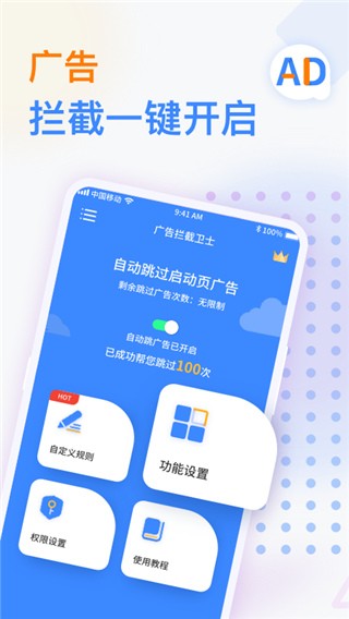 一些不可跳过的广告可以自定义,应用内可以跳过内部信息流、视频、图片等各类广告。