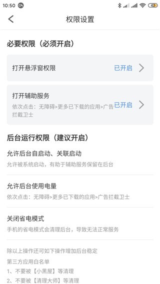 4、权限设置功能,需要打开辅助服务,将app权限打开才能使用。