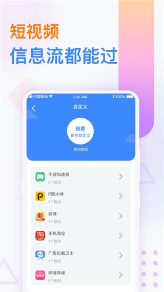 2、点击自定义,可以添加想要屏蔽哪些app的广告。