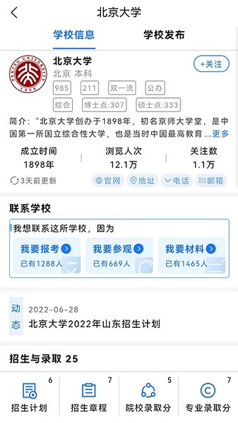 看大学历史、看大学性质、看特色专业、看重点学科、看招生类别等等,涵盖招生录取,招生计划、学校介绍、专业录取分查询等等丰富内容!