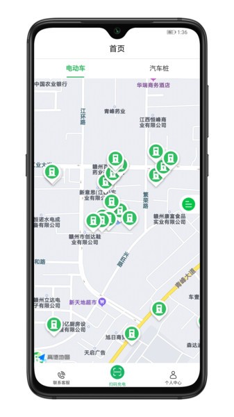 2、附近充电站:可查看附近绿充充旗下两轮车充电桩、汽车充电桩信息。