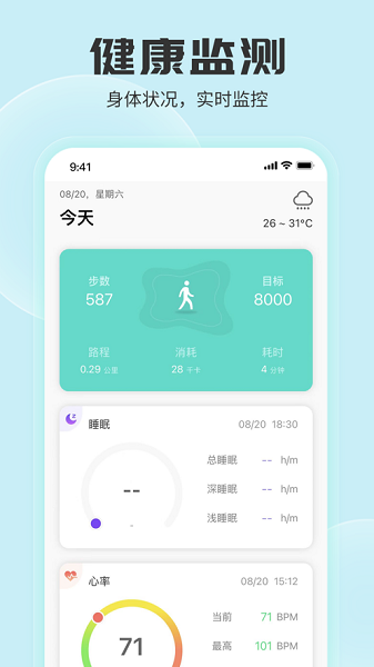 记录了解每天的睡眠状况,帮助大家改善睡眠的质量。