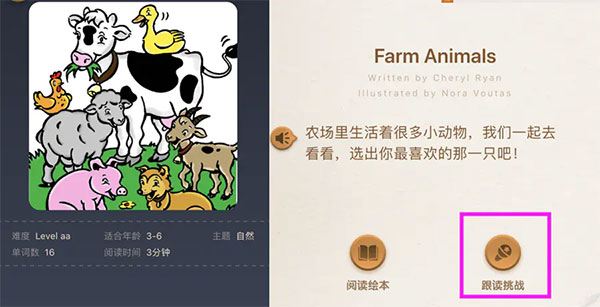6、先点:阅读绘本,让孩子听APP教读,再点击【跟读挑战】并完成跟读!(不用做练习题);