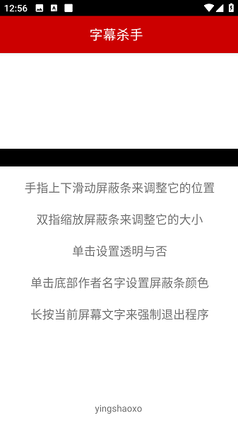 1、启动字幕杀手App,屏幕会出现一条不透明屏蔽条。(注意开启应用在屏幕上显示的权限)