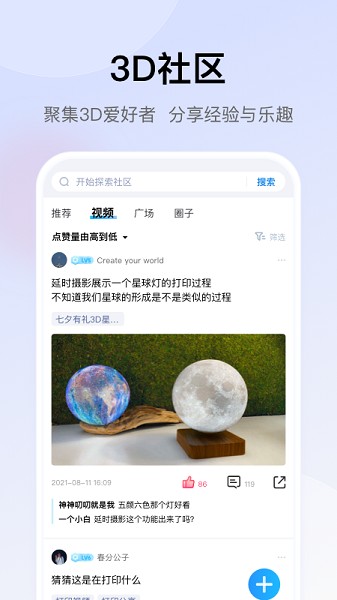 3、大家可以在社区中自由交流3D打印经验,怎么完成打印模型都能学习。