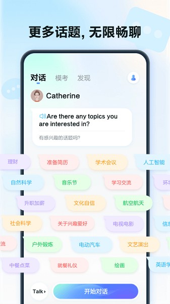 这里拥有超多的话题内容,能够让你练习不同的对话内容。