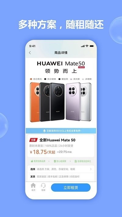 1、免押金租赁:平台与芝麻信用达成合作,提交信用审核后有机会享受0押金租赁。 先用后付费,让您享受无忧换机。