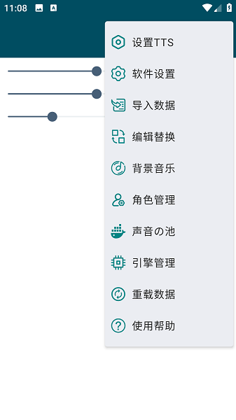 2、语音包导入需要花费一些时间,请耐心等待,导入过程及完成都会有提示。然后再点右上角三个点按钮,选择“设置TTS”,即可把引擎修改为MultiTTS。