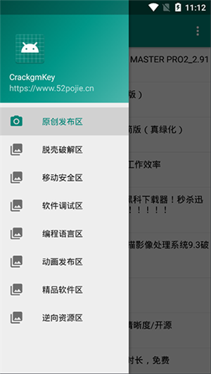 原创发布区、脱壳破解区、软件调整区、手机安全区等