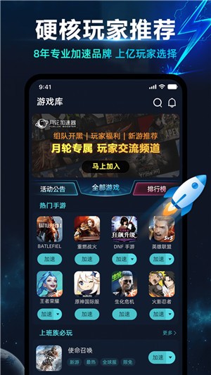 热门游戏全覆盖,支持3000款手游加速,吃鸡游戏、MOBA游戏专业加速,平安京之战、第五人格、明日之后、荒野行动等游戏一键加速,多种选择 高水平玩家,您的游戏助手,体验游戏超惊险。
