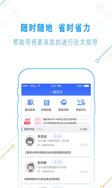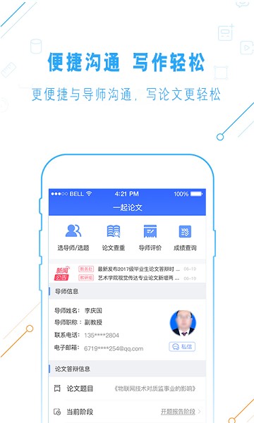 一起论文手机版app让学生以及导师轻松登录平台,让学生可以将自己写的论文提交给导师进行查看,导师可以在线上实时自导学生们写的论文出现的问题,让学习们都可以及时的进行修改,避免查重率过高导致过不了论文了。