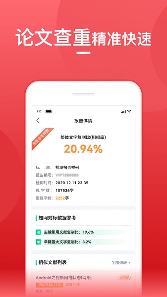 论文查重宝app可以让大家在这里快速进行论文查重的操作,无论什么样的论文都可以上传到平台上进行全面的检测,避免自己的论文总是查重率过高,每次查重之后都可以进行修改的,所有查重的部分都有标红的。