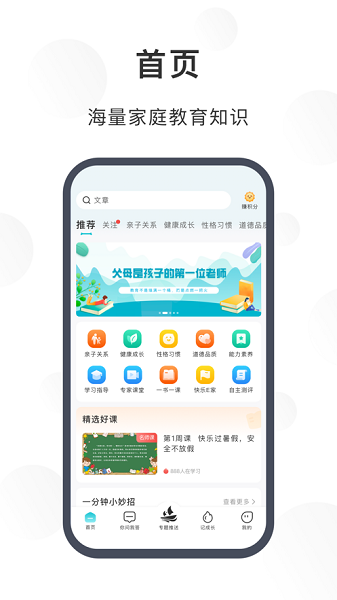 1、为大家带来了众多的家庭教育课程,每天都可以在这里自由学习。