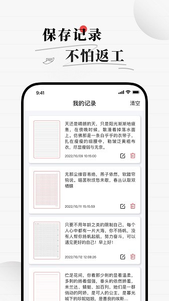 易手写生成器app可以在这里模拟手写文字,帮助大家生成各种手写文章,无需自己动手写文章了,生成的文字内容都可以设置手写字体的,能够完美导出图像,还可以模拟拍照,就像真的自己手写一样,操作都很轻松。
