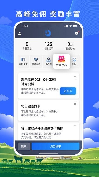 司机端-奖励模块查看每日奖励政策,每日拿高额奖励。