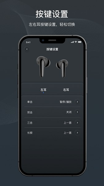 提供有按键设置功能,让用户可以直接在线对左右耳的按键参数进行设置使用。