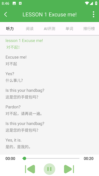 3、日常在这里也是可以语音评测的,时刻纠正自己的发音,非常方便。