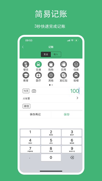 1、在这里可以随时随地快速进行记账,能够根据自己的需求记账。