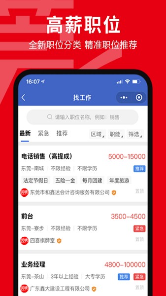 1、在东莞本地生活的人可以在线寻找工作,海量岗位任意选。