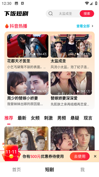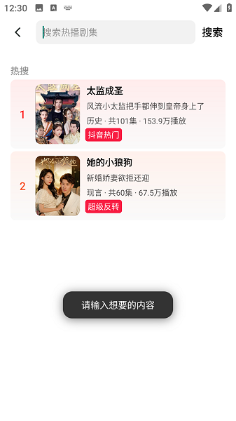 3、日常可以输入关键词搜索对应的短剧,看什么短剧都可以搜索的。