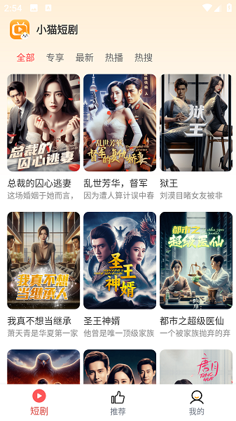 小猫短剧app可以让大家在这里免费看全网的短剧资源,想怎么分类筛选自己想看的短剧都行的。平台上带来的短剧画质非常高的,能够横竖屏自由切换观看了,日常遇到心仪的短剧都可以收藏起来,还可以下载到本地看了。