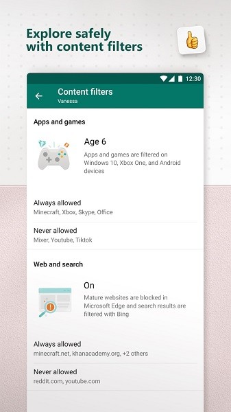 对于家长,它有助于为孩子创建一个安全的在线浏览空间。设置家长控制,筛除不适合未成年人的应用和游戏,并在 Microsoft Edge 上设置适合儿童浏览的网站。