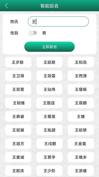 在软件中输入您的名字并点击,自动生成多个免费的个性化艺术字体签名。
