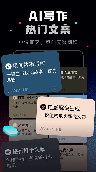 从小说大纲到广告文案,AI全能王的AI写作助手不仅能提供原创内容,还能对您的文字进行细致润色,让您的作品熠熠生辉。