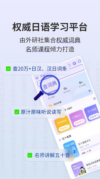 外研社大家的日语电子版app让大家在手机上自由学习各种日语,可以自由查看电子教材,日常可以制定自己的学习计划,每天都可以实时记录学习的进度了,各种单词也是可以轻松进行点读,让大家想怎么背诵单词都是支持的。