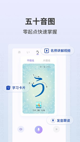 专为日语初学者精心设计五十音图卡片,包含日语假名的发音、书写、罗马音表记方式等,同时配套高校日语专业教授精讲视频,手把手教会你日语五十音的写法和声调。