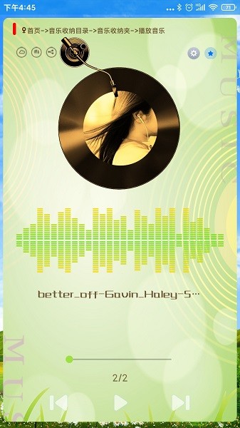 分组收纳管理手机音乐,填写音乐主题,点击音乐微缩图播放手机音乐。