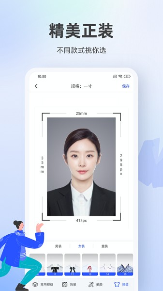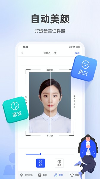 证件照相馆手机版app可以在这里自由制作证件照,带来的工具都可以根据自己的需求进行使用,想怎么进行智能抠图都行,能够精准抠出人物更换背景了,还可以智能的美颜人物的皮肤,也可以为人物更换新的服饰了。