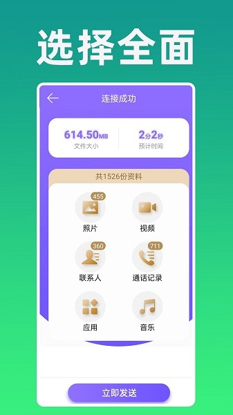 1、平台上带来了专业的传输工具,连接新旧手机都很轻松的。