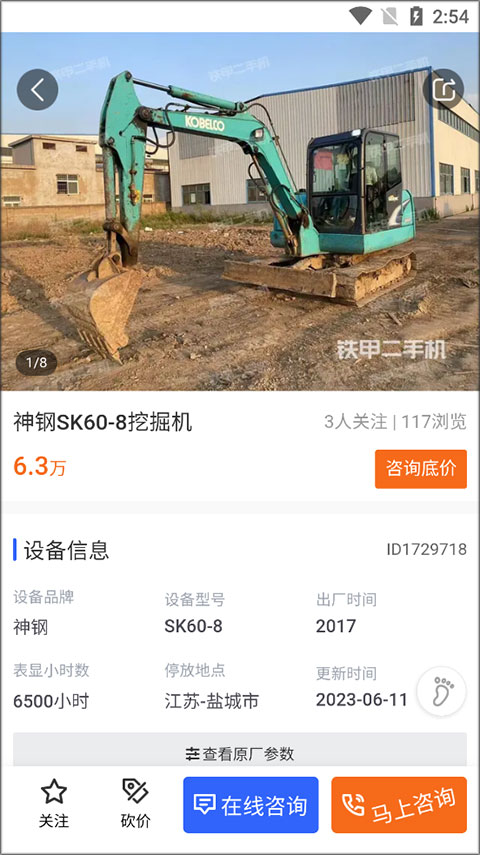 1、线上带来了海量的二手工程机械设备,都是可以自由查看的。