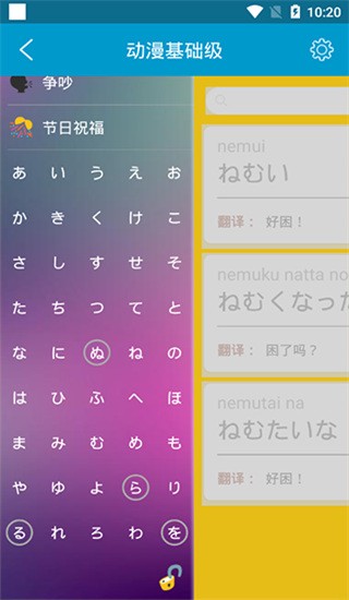 2、日语五十音图:内置日语五十音图,帮助用户系统地学习和记忆日语的基本发音单元,为后续的日语学习打下坚实的基础。
