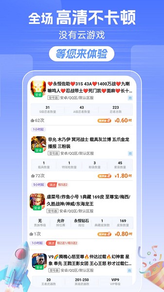 3、能够让大家自由搜索各种弄个游戏账号,各种低价账号自由租。