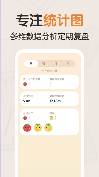 每完成一个番茄钟,都会获得一个可爱的小番茄。每周获得的小番茄还会累积起来,努力也会让人心动和上瘾。