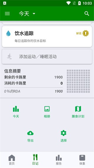 饮食摘要日历可帮助您记录卡路里摄入量和消耗量。