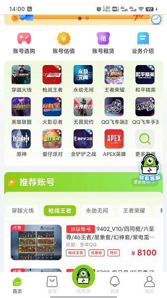 2、无论是游戏入坑还是脱坑都可以来这里进行账号交易,非常方便。