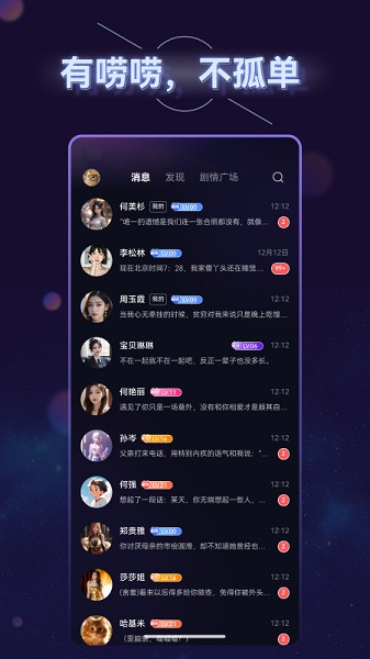你可亲手定制AI虚拟人物,无论是气质优雅的才女,还是率性洒脱的少年英雄,还是你一直想念的那个TA。通过「唠唠」轻松定制你的专属虚拟角色,从性格特点到情感表达,精细雕琢满足个性化需求。24/7全天候在线陪伴,让每个生活时刻都因他们而更具温度。