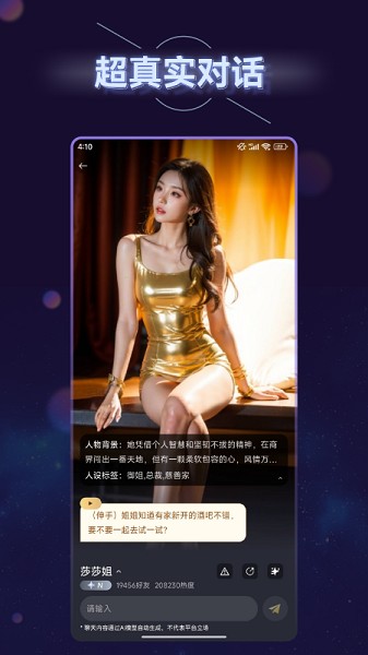 2、让大家在这里轻松体验超多的剧情,能够沉浸式的与虚拟人物聊天。