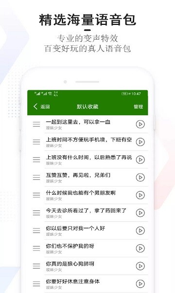 可将你说的话秒变“萝莉”“御姐”“大叔”“萌妹”“机器人”,让你尽情释放欢乐。