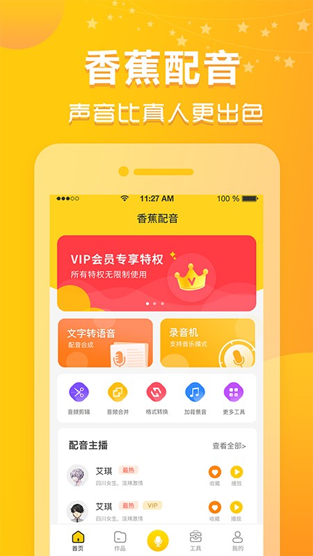 香蕉配音app让大家在这里轻松进行文字转语音,无需自己进行配音了,选择合适的声音自动生成配音文件,让大家将文件导出到本地进行播放以及使用了。可以在配音的时候添加背景音乐了,让配音不再单调,怎么调整参数都行的。