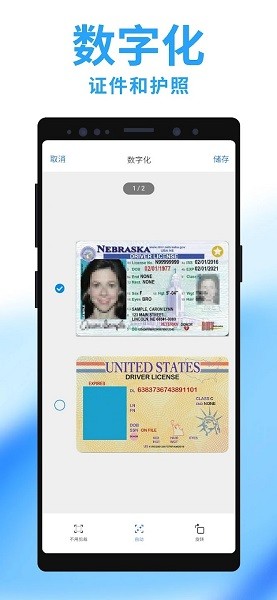 扫描证件和护照:选择这一个模式可以让您快速扫描敏感的文件并确保这些文件的隐私在扫描时已受到保护。